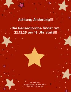 Achtung Änderung: Generalprobe Krippenspiel am 22.12. um 16:00 Uhr!